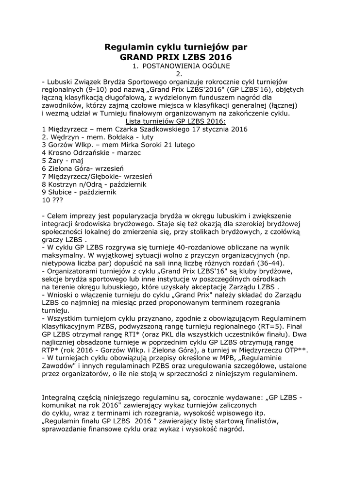 Regulamin GP LZBS - Lubuski Związek Brydża Sportowego