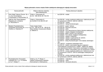 Wykaz jednostek z terenu miasta Chełm selektywnie zbierających