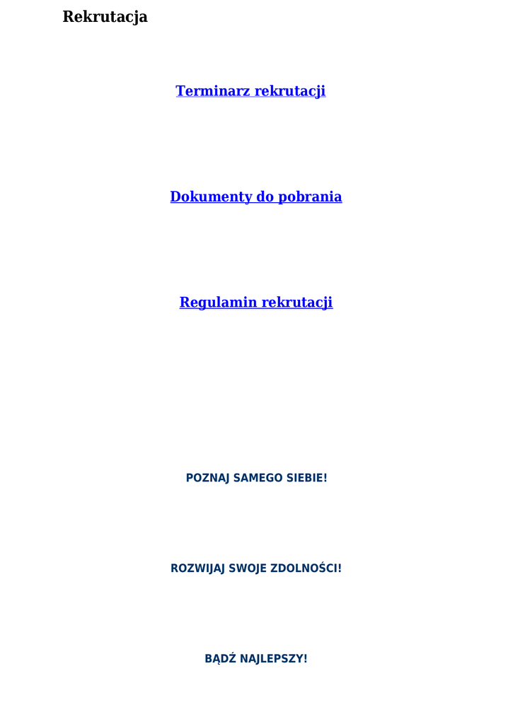 Rekrutacja Terminarz rekrutacji Dokumenty do pobrania Regulamin rekrutacji POZNAJ SAMEGO SIEBIE! ROZWIJAJ SWOJE ZDOLNOŚCI! BĄDŹ NAJLEPSZY! SKORZYSTAJ Z NASZEJ OFERTY I ZOSTAŃ UCZNIEM GIMNAZJUM GMINNEGO NR 1 IM. MJR. PIOTRA SZEWCZYKA W RAJSKU. OFERTA EDUKACYJNA DLA UCZNIÓW KLAS VI NA ROK SZKOLNY 2016/2017 KLASA Z ROZSZERZONYM PROGRAMEM NAUCZANIA JĘZYKA ANGIELSKIEGO, MATEMATYKI, WYCHOWANIA FIZYCZNEGO KLASA MUNDUROWA (OCHRONA PPOŻ., STRZELECTWO SPORTOWE) KLASA OGÓLNA Od roku szkolnego 2016/2017 w Gimnazjum „Szewczyka” lekcje prowadzone będą w oparciu o projekt „Zaprogramuj się na rozwój” z wykorzystaniem nowych technologii informatycznych („e-sport”). OFERTA ZAJĘĆ DODATKOWYCH Akademia Językowa - przygotowanie do międzynarodowego egzaminu Preliminary English Test (PET) z j. angielskiego; zajęcia rozwijające z matematyki pod patronatem oświęcimskiego „Chemika”; koło strzeleckie dla uczniów i ich rodziców; zajęcia laboratoryjne z chemii, biologii, geografii i fizyki; zajęcia muzyczno-wokalne (przygotowanie do festiwali piosenki, nauka gry na gitarze, zespół instrumentalny); Uczniowski Klub Sportowy: sekcje piłki siatkowej, piłki ręcznej, piłki nożnej halowej i tenisa stołowego, zajęcia z capoeiry; warsztaty teatralne, dziennikarskie i origami; koło biblijne; wolontariat; zajęcia wyrównawcze z wszystkich przedmiotów edukacyjnych. NASZE ATUTY wysokie wyniki egzaminu gimnazjalnego (w 2013 roku 4. miejsce wśród wszystkich gimnazjów powiatowych); najlepsi absolwenci w gminie w roku 2013 i 2014; polsko-niemiecka wymiana młodzieży prowadzona od kilkunastu lat z miastem Auerbach; współpraca ze szkołami i uczelniami zagranicznymi z Niemiec i USA; zespoły klasowe liczące do 25 osób; rodzinna atmosfera; bezpieczna lokalizacja, poza główną drogą; bezpieczeństwo na terenie szkoły – brak anonimowości, monitoring, certyfikat „Bezpieczna szkoła – bezpieczny uczeń”; indywidualne przygotowanie do olimpiad i konkursów przez wykwalifikowaną kadrę pedagogiczną; doskonała baza sportowa – hala sportowa; opieka pedagoga szkolnego, zajęcia z doradztwa zawodowego; bezpłatny dowóz do szkoły dla uczniów z obwodu; działalność uczniów w ramach Spółdzielni Uczniowskiej „Amigos” oraz szkolnego radiowęzła; szatnie w postaci indywidualnych szafek; tanie i smaczne obiady, słodkie czwartki.