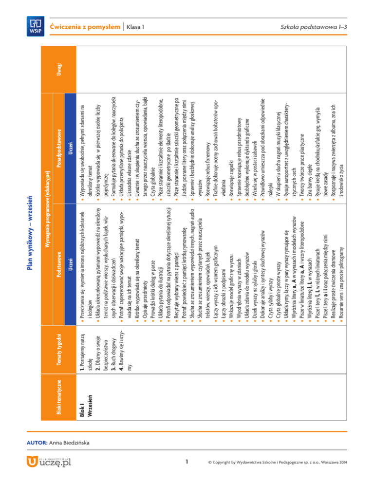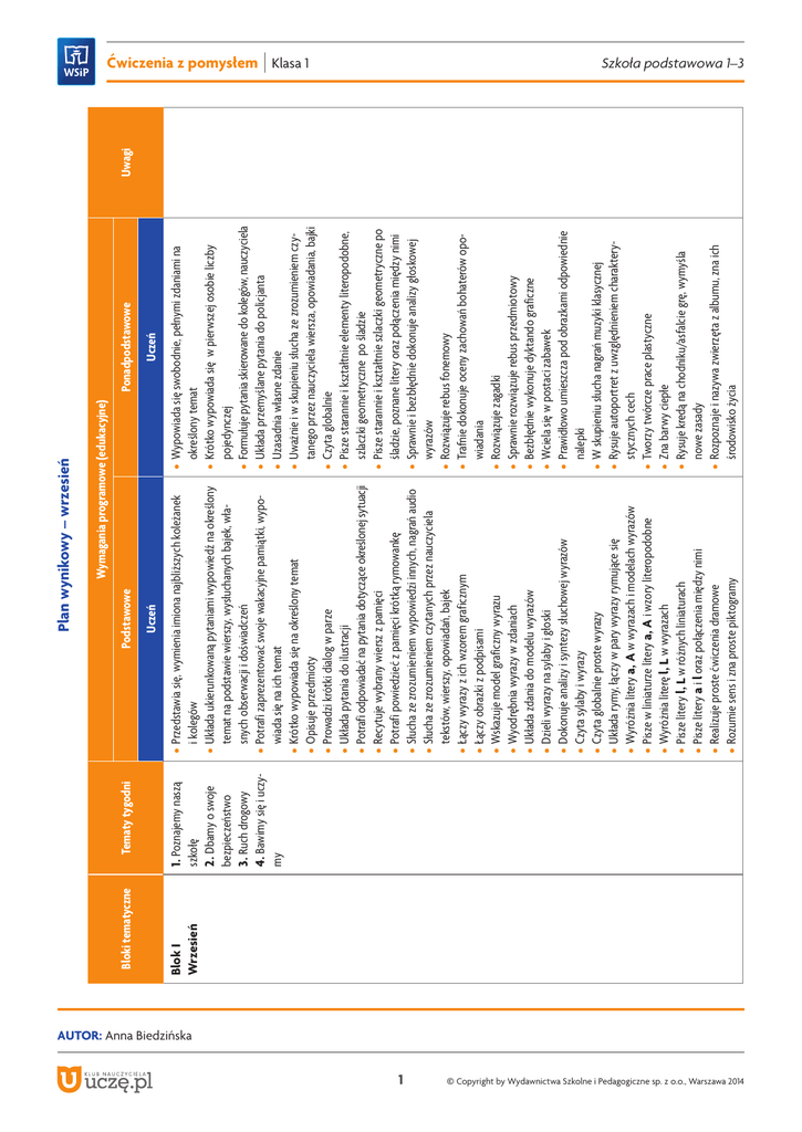 Ćwiczenia z pomysłem | Klasa 1 Plan wynikowy – wrzesień