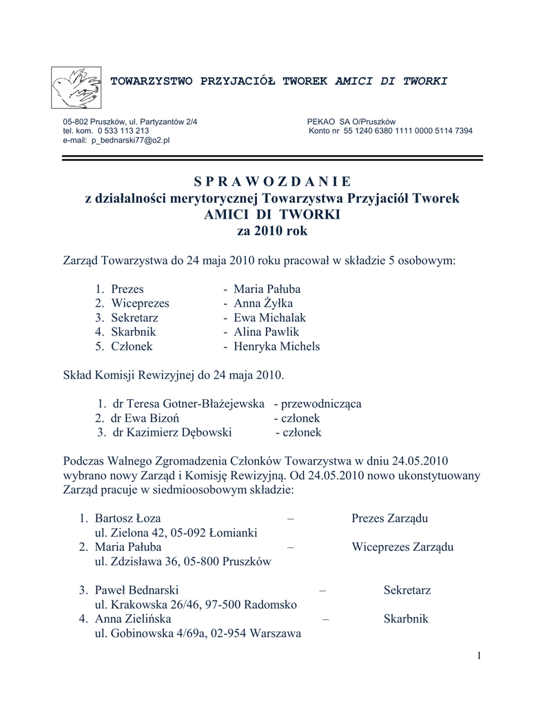 sprawozdanie za rok 2010