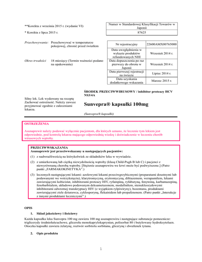 (1) Przed podaniem asunaprewiru należy potwierdzić dodatni status HCV RNA u pacjenta. Należy także