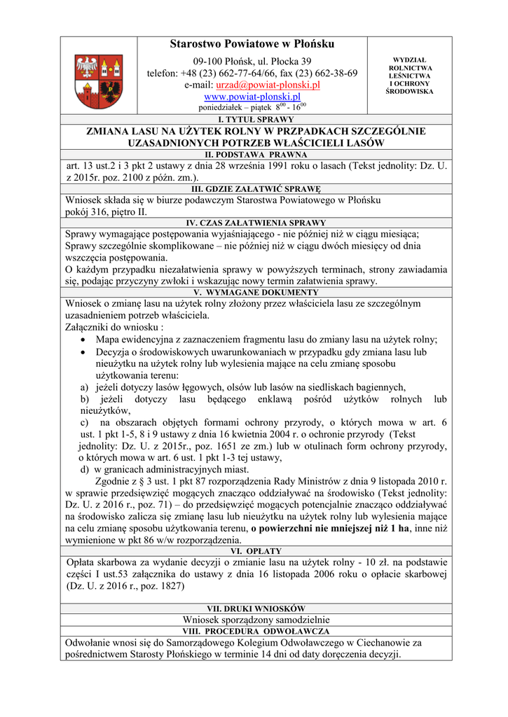 Karta sprawy - Zmiana lasu na użytek rolny w przypadkach