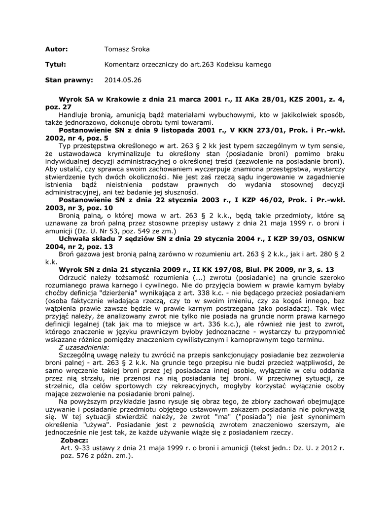 Tomasz Sroka Komentarz orzeczniczy do art.263 Kodeksu karnego