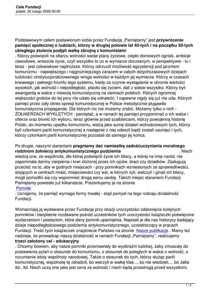 Cele Fundacji - Fundacja Pamiętamy