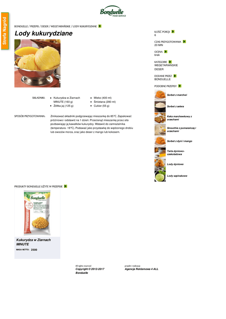 Lody kukurydziane - Bonduelle Food Service