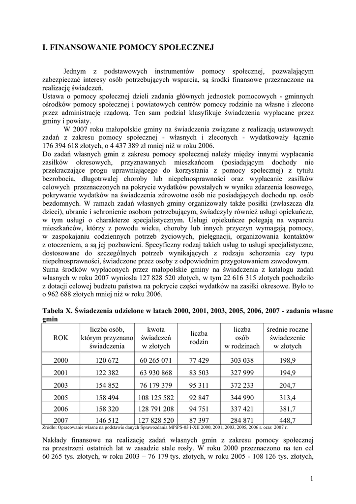I. FINANSOWANIE POMOCY SPOŁECZNEJ