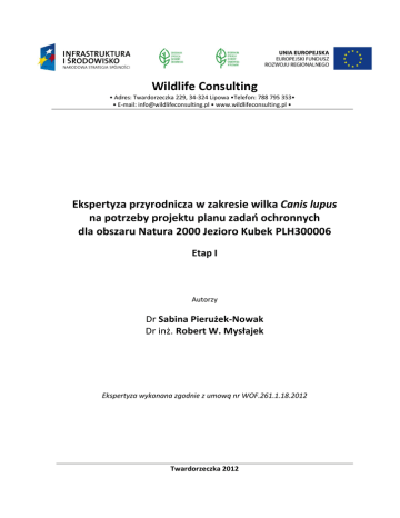 Wildlife Consulting • Adres: Twardorzeczka 229, 34-324 Lipowa •Telefon: 788 795 353• • E-mail: [email protected] • www.wildlifeconsulting.pl • Ekspertyza przyrodnicza w zakresie wilka Canis lupus na potrzeby projektu planu zadań ochronnych dla obszaru Natura 2000 Jezioro Kubek PLH300006 Etap I Autorzy Dr Sabina Pierużek-Nowak Dr inż. Robert W. Mysłajek Ekspertyza wykonana zgodnie z umową nr WOF.261.1.18.2012 Twardorzeczka 2012 Spis treści Wstęp …………………………………………………………………………………………………………. 3 1. Charakterystyka populacji wilka w obszarze ……..…………………………………… 1.1. Liczebność i rozmieszczenie …………………………………………………………… 1.2. Opis gatunku …………………………………………………………………………………. 1.3. Ranga gatunku w obszarze ……………………………………………………………. 1.4. Stan zachowania w obszarze ………………………………………………………… 1.4.1. Ocena stanu ochrony: populacja …………………………………………………… 1.4.2. Ocena stanu ochrony: siedlisko …………………………………………………….. 1.4.3. Ocena stanu ochrony: perspektywy zachowania ………………………….. 1.4.4. Ogólna ocena stanu ochrony ……………………………………………………….. 1.5. Zagrożenia …………………………………………………………………………………….. 4 4 6 12 13 14 15 17 18 19 2. Karta informacyjna zgodna z metodyką GIOŚ ..………………………………………. 28 Literatura ……………………………………………………………………………………………………. 32 2| Wstęp Ekspertyza przyrodnicza w zakresie wilka Canis lupus – została wykonana na potrzeby sporządzenia projektu planu zadań ochronnych dla specjalnego obszaru ochrony siedlisk Natura 2000 „Jezioro Kubek” (kod obszaru PLH300006), zwanego dalej SOO „Jezioro Kubek”. W opisie dotyczącym etapu pierwszego zawarto charakterystykę populacji wilka w obszarze obejmującą: liczebność i rozmieszczenie, opis gatunku, rangę gatunku w obszarze, stan zachowania gatunku w obszarze oraz zagrożenia. Przedstawiono również kartę informacyjną zgodną z metodyką GIOŚ (Jędrzejewski i in. 2010). 3| 1. Charakterystyka populacji wilka w obszarze 1.1. Rozmieszczenie i liczebność SOO „Jezioro Kubek” jest fragmentem terytorium grupy rodzinnej wilków (tzw. watahy) zamieszkującej środkową część Puszczy Noteckiej. Tropienia oraz analiza materiału genetycznego ekstrahowanego z odchodów wilków (S. Nowak, R. Mysłajek, P. Tomczak, niepubl.) pozwoliły potwierdzić, że wataha ta użytkuje obszar położony pomiędzy drogą dk 160 z Międzychodu do Drezdenka przez Sowią Górę (na zachodzie) a linią kolejową E-59 z Krzyża Wielkopolskiego do Wronek przez Miały (na wschodzie). Bez zastosowania telemetrii nie jest możliwe precyzyjne zdefiniowanie powierzchni terytorium watahy. Można jednak przyjąć założenie, że nie odbiega ona zasadniczo od przeciętnych wartości tego parametru uzyskanych w trakcie badań radiotelemetrycznych nad wilkami w Puszczy Białowieskiej. Powierzchnie terytoriów wilczych grup rodzinnych, oceniane metodą najmniejszego wielokąta wypukłego (minimum convex polygon), wynosiła tam od 162 do 350 km2 , średnio 250 km2 (Jędrzejewski i in. 2007). Przyjmując za punkt odniesienia średnią powierzchnię terytorium (250 km2) można założyć, że SOO „Jezioro Kubek”, mający powierzchnię 10,48 km2, stanowi jedynie około 4% terytorium żyjącej na tym obszarze watahy wilków. W trakcie badań terenowych, prowadzonych w latach 2010–2012, regularnie stwierdzano obecność wilków w SOO „Jezioro Kubek”. Wilki rejestrowano najczęściej pomiędzy północną granicą SOO a źródliskami jeziora Kubek (oddziały leśne nr 267–271, 259–262 i 252–254 w Nadleśnictwie Sieraków oraz oddziały leśne nr 238–241, 267–269, 278–280 i 294–295 w Nadleśnictwie Wronki). Na terenie SOO „Jezioro Kubek” 4| stwierdzono również miejsce wychowu młodych. W lipcu 2012 roku, szczenięta rejestrowano w oddziałach nr 267, 268, 238 i 239 w Nadleśnictwie Wronki. W połowie wrześniu 2012 roku jedno martwe szczenię, samicę, odnaleziono w oddziale 267a w Nadleśnictwie Wronki. Liczebność wilczej grupy rodzinnej zajmującej terytorium, w skład którego wchodzi SOO „Jezioro Kubek”, oceniono w latach 2010–2012 na 4–6 dorosłych osobników. Zimą 2012 r. wynosiła ona 5 dorosłych osobników. Liczebność szczeniąt w lipcu 2012 r. wynosiła 5 osobników, w tym jedno szczenię kulejące, jednak we wrześniu 2012 r. po odnalezieniu martwej samicy, liczba zmniejszyła się przynajmniej do czterech. Wysoka śmiertelność młodych wilków, wynikająca zarówno z oddziaływania czynników naturalnych, jak i antropogenicznych, była obserwowana zarówno w nizinnych (Jędrzejewska i in. 1996), jak i górskich (Nowak i in. 2008) populacjach zamieszkujących Polskę. Opierając się na wynikach tych badań można założyć, że do zimy dożywają w badanej grupie wilków średnio tylko 2 szczenięta. Dyspersja osobników dorastających w grupie, które osiągają dojrzałość płciową, stabilizuje liczebność watahy na wykazywanym w trakcie tropień zimowych poziomie 4–6 osobników. Biorąc pod uwagę wspomnianą średnią wielkość terytorium wilków na niżu Polski wynoszącą 250 km2 oraz wskazaną wcześniej liczebność tutejszej watahy można przyjąć, że średnie zagęszczenie populacji wynosi zimą 2 osobniki/100 km2 (zakres od 1,6 do 2,4 osobników/100 km2). 5| 1.2. Opis gatunku Wilk Canis lupus Linnaeus, 1758 (Fot. 1 i 2), jest ssakiem należącym do rzędu drapieżnych Carnivora i rodziny psowat