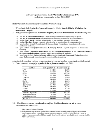 1 Uchwały i postanowienia Rady Wydziału Chemicznego PW