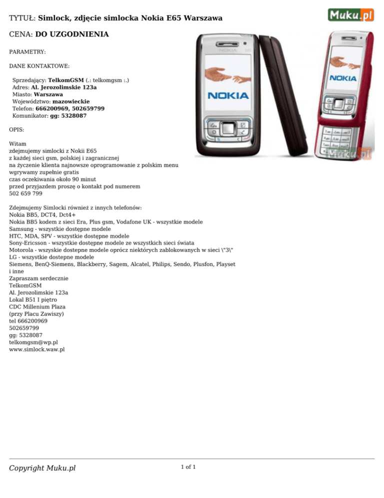 Copyright Muku.pl TYTUŁ: Simlock, zdjęcie simlocka Nokia E65