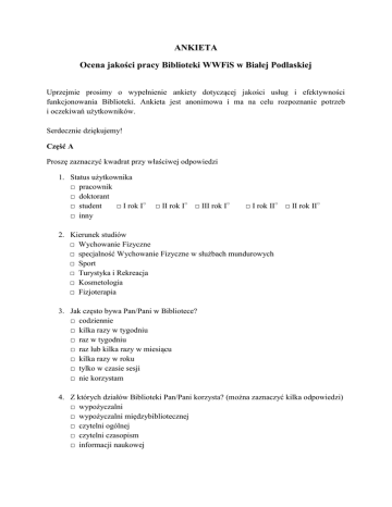 ANKIETA Ocena jakości pracy Biblioteki WWFiS w Białej Podlaskiej