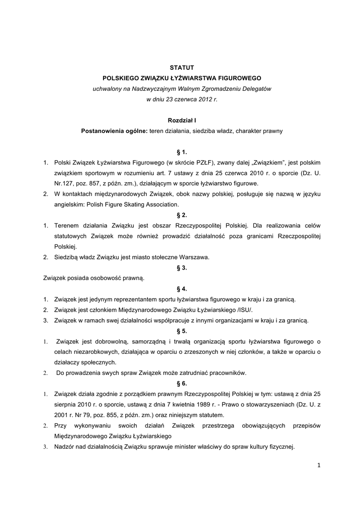 Statut PZŁF - Polski Związek Łyżwiarstwa Figurowego