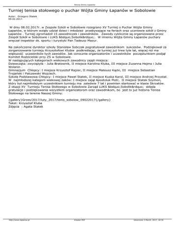gratulacje i podziękowania wszystkim organizatorom oraz zawodnikom, bo jest to już historia Tenisa