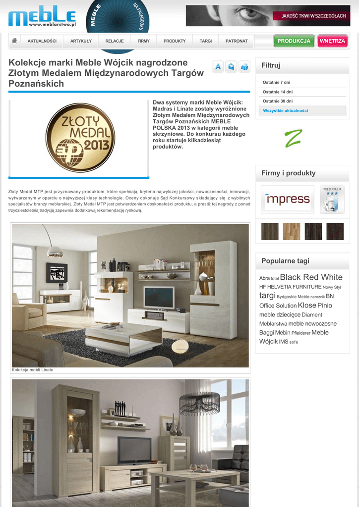 Kolekcje marki Meble Wójcik nagrodzone Złotym Medalem