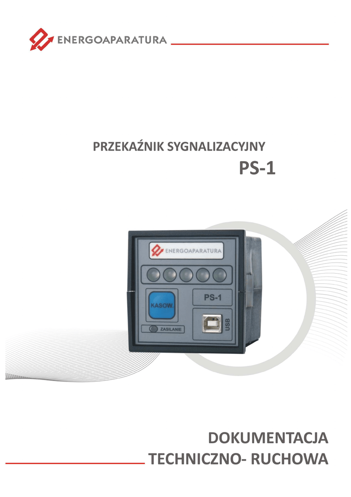1. ZASTOSOWANIE Przekaźnik PS-1 służy do optycznej sygnalizacji zadziałania zabezpieczeń a także sygnalizuje awarię i zakłócenie w pracy urządzeń elektroenergetycznych. Umożliwia wizualizację i powielenie jednego sygnału wejściowego. Sygnalizacja zapewnia personelowi precyzyjną i szybką informację na temat pojawiających się zagrożeń. Przekaźnik może być stosowany w miejsce przekaźników RA-70 oraz RUS. W przypadku stosowania przekaźnika PS-1 w miejsce przekaźnika RUS należy dodatkowo zakupić panel maskujący, który pozwala na instalację PS-1 w miejsce RUS bez jakichkolwiek przeróbek. Urządzenie spełnia ponadto funkcję rejestratora zdarzeń. Dane z dziennika zdarzeń mogą być przekazywane do systemu nadzoru za pomocą łączy światłowodowych protokołem IEC-870-5-103. Urządzenie może być wyposażone w łącze inżynierskie RS232. 2. BUDOWA Przekaźnik mieści się w uniwersalnej obudowie zatablicowej wykonanej z tworzywa niepalnego ABS o wymiarach 72x72x75 mm. Rys. 1. Rysunek wymiarowy przekaźnika PS-1 z gniazdem GZ14-U DTR PS-1 _03.2016 2 Rys. 2. Otwór montażowy dla przekaźnika PS-1 PS-1 wyposażono w trzy złącza PHOENIX: Złącza A i B służą do podłączenia zasilania i sterowania, złącze C wyposażone port komunikacyjny RS485 i RS232 służy do podłączenia do systemu nadzoru lub jako łącze inżynierskie. Przekaźnik posiada jeden izolowany tor sygnalizacyjny. Urządzenie posiada wskaźnik zadziałania w postaci dwukolorowych diod LED (żółto-czerwone) oraz dwa przekaźniki wyjściowe PK1 i PK2 typu RM-84 mogące służyć do: powielenia sygnałów, powielenia sygnałów z możliwością kasowania, pracy impulsowej. Rodzaj pracy w/w przekaźników wybiera się programowo Na życzenie klienta przekaźnik można wyposażyć dodatkowo w złącza światłowodowe umożliwiające podłączenie przekaźnika do systemu nadzoru protokołem IEC 870-5-103. Na płycie czołowej urządzenia umieszczono złącze USB umożliwiające zmianę konfiguracji i nastaw. Program użytkowy dostarczony jest wraz z urządzeniem. Urządzenie PS-1 posiada oprogramowanie umożliwiające konfigurację urządzenia, rejestrację zdarzeń oraz wizualizację pracy urządzenia oraz poszczególnych modułów. Po podłączeniu przewodu USB urządzenie zostaje zasilone automatycznie i system operacyjny wykryje nowe urządzenie. Należy zainstalować sterownik USB dostarczony wraz z oprogramowaniem. Po instalacji sterownika pojawi się w systemie wirtualny port szeregowy COM. DTR PS-1 _03.2016 3 3. ZASADA DZIAŁANIA Napięcie zasilające DC lub AC 220V podawane jest na zaciski A7, A8. Podłączenie zasilania powoduje zapalenie zielonej diody na panelu przednim przekaźnika. Sygnał wejściowy pobudzający może być podawany poprzez podanie napięcia lub jego zanik. Obwody pobudzeń zostały przystosowane do napięcia 220V DC i 230V AC. Zakłócenie może być programowo opóźnione do 25sek i powoduje one uruchomienie migowego światła o częstotliwości 2Hz. Jeżeli po skasowaniu: sygnał przechodzi w stan świecenia ciągłego - zakłócenie trwa nadal. . jeżeli po skasowaniu sygnał optyczny jest wygaszony- zakłócenie było przemijające, oczekuje na ponowne zakłócenia. Sygnalizacja wyposażona jest w sygnał powielający zakłócenie. Przekaźniki powielające PK1 i PK2 zamykają zestyki w momencie, kiedy zakłócenie zostało uznane za zdarzenie to znaczy po czasie nastawionym przez klienta plus czas własny przekaźnika. UWAGA ! Zanik napięcia zasilającego powoduje odpadnięcie przekaźników PK1 i PK2 oraz wygaszenie diod sygnalizacyjnych. Stan urządzenia zostaje jednak zapisany w pamięci urządzenia i powrót napięcia zasilającego spowoduje przywrócenie stanu diod oraz przekaźników sprzed awarii. Możliwe jest ustawienie następujących trybów pracy: światło migowe szybkie 2-hz, światło migowe wolne 0,5 hz (uruchamiane po zaniku trwałego sygnału skasowanego), pobudzenie na pojawienie się napięcia, pobudzenie na zanik napięcia, zwłoka czasowa na pojawienie się sygnału do 25sek, zwłoka czasowa na zanik sygnału do 25sek, przekaźnik powielający – działanie do skasowania, przekaźnik powielający – działanie do zaniku pobudzenia, przekaźnik powielający – działanie impulsowe 2sek. DTR PS-1 _03.2016 4 4. SCHEMAT FUNKCJONALNY Rys. 3. Schemat funkcjonalny przekaźnika PS-1 5. DANE TECHNICZNE DTR PS-1 _03.2016 5 Napięcie zasilające Wejścia sygnałowe Wyjścia sterujące Izolacja Dane ogólne Dane zestyków wyjściowych Napięcie zasilające UN 220 V DC lub 230V AC lub inne Dopuszczalny zakres napięcia 0,5-1,2 UN Pobór mocy 2W Liczba wejść 2 Izolacja 2500V Napięcie sygnałów wejściowych (140V DC - 160V DC) (110V AC 140V AC) lub inne Zakres opóźnienia wejść (poziom wrażliwości wejść na podawane sygnały napięciowe) 0,1 s- 25 s Liczba styków 2 Obciążalność prądowa 5A Zdolność łączeniowa 0,1A DC Napięcie znamionowe 230V AC/DC Wytrzymałość elektryczna 2500V Stopień ochrony obudowy IP40 Liczba kanałów komunikacyjnych 1 Wyprowadzenia (gniazdo/wtyczka) Złącza Phoenix A, B, C(opcja) Sygnalizacja zadziałania dwukolorowe diody LED (żółto czerwone) Wilgotność otoczenia 90% Wymiary 72x72x75mm Temperatura pracy od -5 °C do +40 °C Masa 0,3 kg Maksymalny prąd ciągły 5A Maksymalny prąd wyłączalny DC 0,1 A; 220 V DC Tab.1. Szczegółowe dane techniczne- PS1 MI 6. OZNACZENIE ZNAKIEM CE Oznaczenie znakiem CE wykonano w 2011r. Oznaczenie wykonane jest na tabliczce znamionowej (rys. 4) umieszczonej na boczne ścianie przekaźnika PS-1. Umieszczono na niej podstawowe parametry przekaźnika PS-1 oraz napisano normę odniesienia. DTR PS-1 _03.2016 6 Rys. 4 Tabliczka znamionowa przekaźnika PS-1 DTR PS-1 _03.2016 7 7. SERWIS Urządzenia wyprodukowane przez firmę Energoaparatura SA objęte są standardowo dwuletnim okresem gwarancyjnym. Serwis gwarancyjny oraz pogwarancyjny wykonywany jest w siedzib