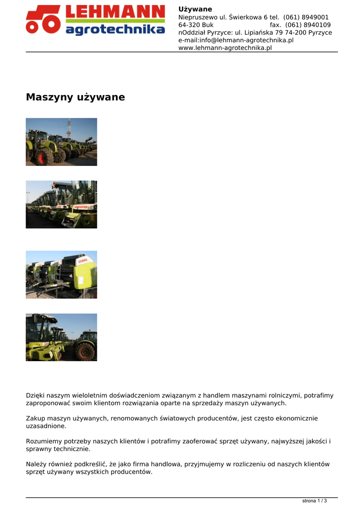 Maszyny używane - Lehmann agrotechnika