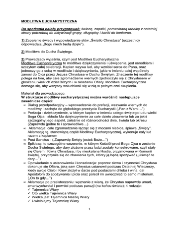 MODLITWA EUCHARYSTYCZNA Do spotkania należy przygotować