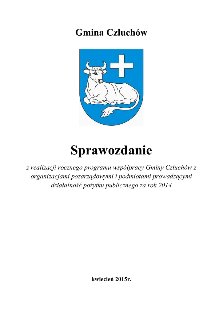 Gmina Człuchów Sprawozdanie z realizacji rocznego programu współpracy Gminy Człuchów z organizacjami pozarządowymi i podmiotami prowadzącymi działalność pożytku publicznego za rok 2014 kwiecień 2015r. CZĘŚĆ I WPROWADZENIE Współpraca Gminy Człuchów z sektorem pozarządowym w roku 2014, oprócz przepisów ustawy o działalności pożytku publicznego i o wolontariacie opierała się na uchwalonym przez Radę Gminy Człuchów, Rocznym Programie Współpracy Gminy Człuchów z organizacjami pozarządowymi oraz innymi podmiotami prowadzącymi działalność pożytku publicznego na rok 2014. Niniejszy dokument został przyjęty przez Radę Gminy Człuchów Uchwałą Nr XLI/310/13 z dnia 26 listopada 2013 roku. Program współpracy jest dokumentem, który określa cele, zasady, formy oraz obszary wzajemnej współpracy samorządu terytorialnego i organizacji pozarządowych. Jest on uchwalany co roku zgodnie z dyspozycją art. 5a, ust 1. ustawy o działalności pożytku publicznego i wolontariacie (Dz. U. z 2003r, Nr 96, poz. 873 z późn. zm.). Dokument ten powstał w oparciu o wiedzę i praktykę pracowników Urzędu Gminy Człuchów, dzięki temu z roku na rok jest on bogatszy o coraz to nowsze możliwości podejmowania współpracy. Ponadto wyżej wymieniony dokument, zawiera wykaz zadań stanowiących podstawę dla władz Gminy, do dysponowania środkami publicznymi, przeznaczonymi na finansowanie lub dofinansowanie zadań publicznych pozostających we właściwości samorządu, a realizowanych przez organizacje pozarządowe. Nadrzędnym celem Programu było budowanie partnerstwa pomiędzy Gminą, a podmiotami Programu oraz aktywna współpraca z tymi podmiotami, postrzegana jako element sprawnego i efektywnego zarządzania Gminą. Organizacje pozarządowe, tzw. III sektor, są ważnym partnerem władz samorządowych stymulującym rozwój naszej gminy. Silne organizacje pozarządowe są efektywnym partnerem w realizowaniu aktywnych polityk rynku pracy, dialogu społecznego, pobudzają aktywność i zaangażowanie mieszkańców. Powierzanie organizacjom pozarządowym zadań społecznych zwiększa efektywność i skuteczność ich realizacji. Dlatego stymulowanie rozwoju III sektora leży w interesie każdego samorządu. Zgodnie z art. 5a ust. 3 ustawy o działalności pożytku publicznego i wolontariacie (Dz. U. z 2003 r., Nr 96, poz. 873 z późn. zm.) organ wykonawczy jednostki samorządu terytorialnego, nie później niż do dnia 30 kwietnia każdego roku, jest obowiązany przedłożyć organowi stanowiącemu jednostki samorządu terytorialnego oraz opublikować w Biuletynie Informacji Publicznej sprawozdanie z realizacji programu współpracy za rok poprzedni. 2 CZĘŚĆ II SPRAWOZDANIE Z REALIZACJI ROCZNEGO PROGRAMU WSPÓŁPRACY ZA ROK 2014 I. FORMY WSPÓŁPRACY GMINY CZŁUCHÓW Z ORGANIZACJAMI POZARZĄDOWYMI WSPÓŁPRACA FINANSOWA Współpraca Gminy Człuchów z organizacjami pozarządowymi i innymi podmiotami prowadzącymi działalność pożytku publicznego w roku 2014 obejmowała zadania własne gminy mieszczące się w sferze zadań publicznych wg katalogu zadań z art. 4 ust. 1 ustawy. Na podstawie zdiagnozowanych potrzeb, zadaniami priorytetowymi Gminy Człuchów na 2014r. były: Priorytet 1: W ZAKRESIE WSPIERANIA I UPOWSZECHNIANIA KULTURY FIZYCZNEJ 1) wspieranie sportu oraz zaspokajanie potrzeb mieszkańców w tym zakresie poprzez wsparcie realizacji programów szkolenia sportowego oraz uczestniczenia w zorganizowanej rywalizacji sportowej prowadzonej przez właściwe związki sportowe; 2) propagowanie kultury fizycznej, zdrowego trybu życia, upowszechniania sportu wśród mieszkańców Gminy poprzez organizację lub uczestniczenie w imprezach, zawodach, zajęciach sportowych; 3) organizacja imprez sportowych i sportowo-rekreacyjnych, w tym również zajęć sportowych dla osób niepełnosprawnych; 4) promocja Gminy poprzez sport: promocja osiągnięć sportowych, promocja działań trenerów oraz sportowców osiągających wysokie i wybitne wyniki we współzawodnictwie sportowym; 5) podnoszenie kwalifikacji kadry trenerskiej. Priorytet 2: W ZAKRESIE PORZĄDKU I BEZPIECZEŃSTWA PUBLICZNEGO 1) zapewnienie porządku i bezpieczeństwa publicznego na akwenach wodnych; 2) współuczestnictwo w imprezach promujących alternatywne formy spędzania czasu wolnego celem przeciwdziałania patologiom dzieci i młodzieży, 3 Priorytet 3: DZIAŁANIA W ZAKRESIE PROFILAKTYKI ANTYALKOHOLOWEJ Priorytet 4: NAUKI, SZKOLNICTWA WYŻSZEGO, EDUKACJI, OŚWIATY I WYCHOWANIA; 1) Działania na rzecz podnoszenia poziomu wykształcenia mieszkańców Gminy Człuchów poprzez udzielenie pomocy materialnej dla uczącej się młodzieży oraz wyrównywanie szans w dostępie do edukacji; 2) Wspomaganie rozwoju i uzdolnień dzieci i młodzieży; 3) Wspieranie przedsięwzięć artystycznych o charakterze regionalnym. PRIORYTET 5: Wypoczynku dzieci i młodzieży 1) Organizacja czasu wolnego dzieci i młodzieży PRIORYTET 6: Turystyki i rekreacji Współpraca finansowa polegała na zlecaniu realizacji zadań publicznych w formie wsparcia bądź powierzenia wykonania określonego zadania, wraz z udzieleniem dotacji na dofinansowanie jego realizacji w wyniku przeprowadzonego konkursu. Dotacje dla organizacji pozarządowych na realizację zadań, zostały przekazane wybranym podmiotom po przeprowadzeniu postępowania konkursowego zgodnie z przepisami ustawy z dnia 24 kwietnia 2003 r. o działalności pożytku publicznego i o wolontariacie (Dz. U. 2003 nr 96 poz. 873 z późn. zm.), oraz Rocznym Programem Współpracy Gminy Człuchów z organizacjami pozarządowymi na rok 2014. W ramach współpracy finansowej przeprowadzono 2 otwarte konkursy ofert na realizację wyżej wymienionych zadań publicznych w 2014r.: Konkurs ogłoszony został zarządzeniem Wójta Gminy Człuchów z dnia 24 grudnia 2013r., nr 205/13 w sprawie ogłoszenia i przeprowadzenia konkursu na dotacje w postępowaniu konkursowym i o