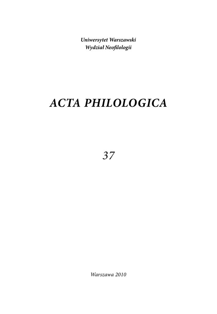 acta philologica 37 - Uniwersytet Warszawski
