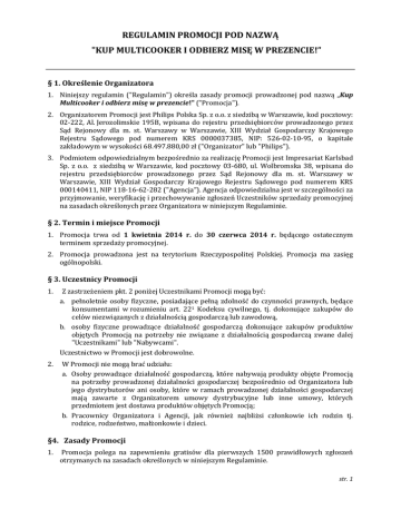 do regulaminu promocji "Kup Multicooker i odbierz misę w prezencie!"