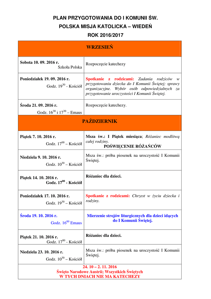 plan przygotowań - Polska Misja Katolicka w Austrii