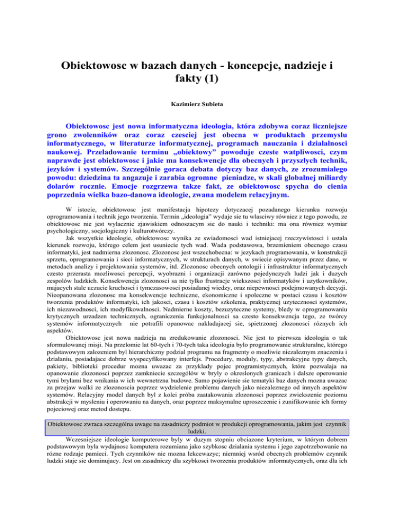 Obiektowosc w bazach danych - koncepcje, nadzieje i fakty (1)