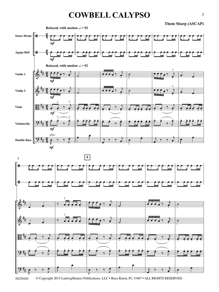 COWBELL CALYPSO Snare Drum ã Agogo Bell ã Thom Sharp (ASCAP) Relaxed, with motion q = 92 2 4 œœ œœ œœ œœ œœ œœ œœ œœ œœ œœ œœ œœ œœ œœ œœ œœ œœ œœ F 42 œ œ œ œ œ œ œ œ œ œ œ œ œ œ œ œ œ œ œ œ œ œ œ œ œ œ œ œ œ œ œ œ œ œ œ œ F Relaxed, with motion q = 92 Violin 1 Violin 2 Viola Violoncello # & # 42 œ œ œ œ ‰ F # 2 œœœœ‰ & # 4 F ≤ B # # 42 œ œ ‰ . . F . ≤. ? # # 42 œ œ ‰ F j œ. j œ. ≤j œ. ≤ œ. J œ œ œ œ ‰ œj . ˙ œ œ œ œ ‰ œj . ˙ œ. œ. œ. œ. œ. œ. œ. œ. ‰ œ.j œ. œ. œ. œ. œ. œ. œ. œ. ‰ œ. J œ œ ? # # 42 œ ‰ ‰ œ J J F pizz. Double Bass ã œœ œœ œœ œœ œœ œœ œœ ã œ œœœ œœ œ œœœ œœ œ & & ## œ œ œ œ B ## œ œ . . . . ? ## œ œ ? ## œ ‰ J 50250101 ‰ œj . œ. ‰ J ‰ œJ ≤ ‰ œ œ œ œ œ. ≤ ‰ œ œ œ œ œ. œ. œ. œ. œ. œ. œ. œ. œ. œ œ j j œ ‰ ‰ œ 9 7 ## 3 œ œ œ œ ‰ ≤j œ. ˙ j œ. œ. œ. œ. œ. œ. œ. œ. ‰ œ. œœœ œœ œ œœœ œœ œ œ œ œ œ ‰ œj . œ. œ. œ. œ. ‰ œj . œ J ‰ ‰ œJ œ. œ. ‰ J œ ˙ ˙ ‰ œj . œ. œ. œ. œ. œ. œ. j œ ‰ ‰ œj œ œ. œ. œ. œ. œ. œ. œ. œ œ œ. œ. œ. œ. œ. œ. œ. œ. œ œ œœœ œœ œ œœœ œœ œ œ œ œ ‰ œj . ˙ œ œœ œœ œœ œœ œœ œ œ œ œ ‰ œj . ˙ œ œ. œ. œ. œ. œ. œ. j ‰ ‰ œj œ œ œ œ œ. œ. œ. œ. œ. œ. œ. œ. œ. œ. œ. œ. œ. œ. ‰ œJ. œœ œœ œœ œœ œœ œœ œ œ œ œ ‰ œj . œ. œ. œ. ≤ œœœœ‰ j œ. ˙ œ. . ‰ œJ œ. œ. œ. œ. œ. œ. © Copyright 2015 LudwigMasters Publications, LLC • Boca Raton, FL 33487 • ALL RIGHTS RESERVED. œ 4 17 13 ã œœ œœ œœ œœ œœ œœ œœ œœ œœ œœ œœ œœ œœ œœ œœ œœ œœ œœ œœ œœ œœ ã œ œœœ œœ œ œœœ œœ œ œœœ œœ œ œœœ œœ œ œœœ œœ œ œœœ œœ œ œœœ œœ F & & F ## ## ≤j œ ‰ œ œ œ œ œ. ≤j œ ‰ œ œ œ œ œ. œ œ ˙ œ ˙ œ Œ ∑ ∑ Œ Œ ∑ ∑ Œ ≥œ œ œ œ ‰ B # # œ œ ‰ œj œ œ œ œ œ œ œ œ ‰ œj œ œ œ œ . . . . . . . . . . . . . . . . . . . ? # # œ œ ‰ œJ œ. œ. œ. œ. œ. œ. œ. œ. ‰ œ. J ? # # j ‰ ‰ œj œ œ œ œ ‰ ‰ œJ J F ≥œ œ œ œ œ. œ. œ. œ. F œ œ œ.≤ J œ≤. ‰ J j ‰ ‰ œj œ œ œ œ ≤ œ œ P ≤ œ œ P œ ˙ œ ˙ œ œ ‰ ‰ œJ J 25 20 ã œœ œœ œœ œœ œœ œœ œœ œœ œœ œœ œœ œœ œœ œœ œœ œœ œœ œœ œœ œœ œœ ã œ œœœ œœ œ œœœ œœ œ œœœ œœ œ œœœ œœ œ œœœ œœ œ œœœ œœ œ œœœ œœ # & # ˙ # & # ˙ ≤ B ## ‰ œ œ œ œ œ . . ≤ ? ## ‰ œ œ œ œ œ ? ## œ 50250101 œ Œ œ œ ˙ Œ œ œ Œ œ œ ˙ Œ œ œ ˙ ˙ ≤ ‰ œ œ œ œ œ. ≤ œ. ‰ œœœœ j œ j œ ‰ ‰ œ œ œ œ œ œ ˙ œ œ œ œ œ œ ˙ œ œ œ œ ˙ ∑ ˙ ∑ œ ‰ ‰ œJ J œ œ ≥œ œ œ œ œ≤. ‰ J ≥œ œ œ œ œ≤. ‰ J œ j ‰ ‰ œj œ œ œ œ 5 27 ã œœ œœ œœ œ œ ã œ œœœ œœ œ & & ## ## œ œ œ œ B ## ˙ œ œ œ œ ã ã œ œ f œ f ˙ Œ ≤ œ œ œ œ œ. œ≤ œ œ œ œ. ‰ œœ œ Œ œ œ œ œ œ œ ‰ œœ œ Œ ‰ œ≤ œ œ œ≤ œ œ œ œ œ œ œ. œ œ œ. ˙ ‰ ≤ œ œ œ œ œ. . œ≤ œ œ œ œ œ œ œ œ œ œ œ Œ œ œ œ œ œ œ œ œ Œ œ f œ œ œ ‰ œ ‰ œJ œ œ ˙ œ # # ≥œ œ œ œ œ œ œ œ œj ‰ Œ & . f # ≥ & # œ œ œ œ œ œ œ œ œj ‰ Œ . f ≥ B # # œ œ œ œ œ œ œ œ œj ‰ Œ . f pizz. ? ## ∑ Œ œ f ? ## ∑ Œ œ 50250101 œ œ œ œœœ œœ œ ˙ ‰ ? ## œ ‰ J 33 œ œ œ œ œ œœ œœ œœ œ œ Œ ‰ ? ## ˙ œ œ ‰ œj j œ ‰ œ œ œ œ œ Œ œ œ œ œ œ œ œ œ Œ œ ≥ œ œ œ œ œ œ œ œ œ. ‰ Œ J ≥ j ‰ Œ œ œ œ œ œ œ œ œ œ. ≥ j œ œ œ œ œ œ œ œ œ. ‰ Œ ≥ œ. œ. ƒ ≥ ‰ œ. œ. ƒ ≥ ‰ œ. œ. ƒ ≥ ‰ œ. œ. œ. œ. œ. œ. œ. ƒ œ ‰ ‰ œJ J ƒ Œ Œ Œ œ. Œ œ Œ œ œ œ œ œ Œ œ œ œ œ œ œ Œ ≥œ œ œ œ œ œ œ œ œj ‰ Œ . ≥ œ œ œ œ œ œ œ œ œj ‰ Œ . ≥ j ‰ Œ œ œ œ œ œ œ œ œ œ . ∑ Œ œ ∑ Œ œ ∑ Œ œ ∑ Œ œ 6 39 ã œ œ ã œ œ œ œ œ œ Œ œ œ œ œ œ œ Œ 41 œ œ œ . # & # œ œ œ œ œ œ œ œ œJ ‰ Œ # j & # œ œ œ œ œ œ œ œ œ. ‰ Œ ? ## 45 ∑ ã œ œ ã œ Œ œ œ œ œ œ œ œ œ Œ œ œ œ œ œ œ Œ œ œ œ œ œ œ Œ œ œ œ œ œ œ œ œ j ‰ Œ œ. œ œ œ œ œ œ œ œ œ. ‰ Œ J œ œ œ œ œ œ œ œ œj ‰ Œ . j œ œ œ œ œ œ œ œ œ. ‰ Œ j ‰ Œ œ œ œ œ œ œ œ œ œ . Œ œ ∑ Œ œ ∑ Œ Œ œ ∑ Œ œ ∑ Œ 49 œ œ œ œ œ œ œ Œ ∑ œ œ œ œ œ œ œ œ Œ ∑ œ. Œ # j j & # œ œ œ œ œ œ œ œ œ ‰ œ ‰ # & # œ œ œ œ œ œ œ œ œj ‰ œj ‰ j ‰ j ‰ B ## œ œ œ œ œ œ œ œ œ œ œ. Œ œ. Œ Œ Œ ? ## ∑ Œ œ œ ? ## ∑ Œ œ œ 50250101 œ œ œ œ œ œ œ œ œ œ œ œj ‰ Œ . B # # œ œ œ œ œ œ œ œ œj ‰ Œ . ? ## Ó œ œ ≥ œ œ F ≥ œ œ F ≥ œ F arco ≥ œ œ F œ œ P œ œ œ œ œ œ œ P œ œ œ œ œ œ ∑ œ œ œ œ œ œ ≤ œ œ œ œ ‰ œ. J P ≤ œ œ œ œ ‰ œJ. P ˙ P ˙ P j œ ‰ œ œ œ œ œ œ œ œ œ œ œ œ œ œ œ ˙ ˙ ‰ œj œ œ 7 51 ã œœ ã œ œœœ œœ œ œœœ œœ œœ œœ œœ & ˙ ≥ B # # œ œ œ œ ‰ œ.j ≥. ? # # œ œ œ œ ‰ œJ ? ## œ ‰ J 57 ã œœ ã œ ‰ œJ ˙ œ œ ˙ ≥j ‰ œ œ œ œ œ. œœœœ ≥œ. ‰ J j œ ‰ ‰ œj œœœ œœ œ œœœ œœ œ ≤. # ≥ & # œ œ œ œ ‰ œJ B ## ˙ œ œ œ ˙ ‰ œj œ œ ˙ œ œœœ œœ œ œœœ ˙ ≥j ‰ œ œ œ œ œ. ‰ ‰ œJ ˙ œ œ ˙ ∑ ˙ ∑ ≤ œ œ œ œ ‰ œj . œ œ œ œ œ≤. ‰ J ‰ œœ œœ œœ œ ≤ ‰ œ œ œ œ œ. ˙ œ œ œ œ œ œ œœœ œœ œ J ≤ ‰ œ œ œ œ œ.