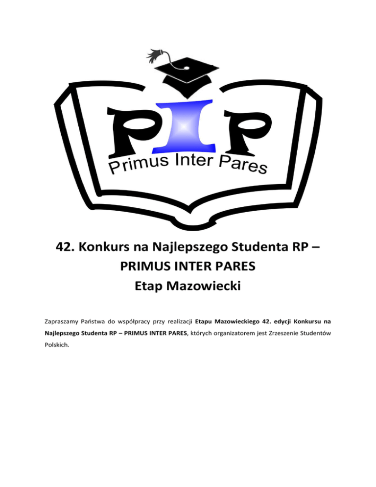 42. Konkurs na Najlepszego Studenta RP – PRIMUS INTER PARES Etap Mazowiecki Zapraszamy Paostwa do współpracy przy realizacji Etapu Mazowieckiego 42. edycji Konkursu na Najlepszego Studenta RP – PRIMUS INTER PARES, których organizatorem jest Zrzeszenie Studentów Polskich. Szanowni Paostwo, Mamy zaszczyt zaprosid Paostwa do zapoznania się z ofertą Etapu Regionalnego Województwa Mazowieckiego Konkursu na Najlepszego Studenta Rzeczypospolitej Polskiej „PRIMUS INTER PARES”, którego Gala Regionalna odbędzie się 1 czerwca 2011 roku w Warszawie. Konkurs PRIMUS INTER PARES to najważniejsze wydarzenie środowiska akademickiego w kraju. To doroczne wyłonienie oraz nagrodzenie studentów w całej Polsce, którzy poza wysoką średnią (min. 4,53) poszczycid się mogą dodatkowymi osiągnięciami w murach swej uczelni lub poza nią. Są to m.in. referaty, publikacje, odczyty, wnioski racjonalizatorskie, działalnośd w organizacjach studenckich, udział w wymianach zagranicznych. W etapie Regionalnych wyłonimy i nagrodzimy studentów mazowieckich uczelni, którzy reprezentowad będą środowisko mazowieckie w finale ogólnopolskim. Równolegle do konkursu Primus Inter Pares odbywad się będzie konkurs Primus Ekspert, mający na celu wyróżnienie najlepszych specjalistów danych dziedzin. Będą to poszukiwania najlepszego lekarza, prawnika, ekologa, artysty, sportowca, ekonomisty, informatyka, pedagoga, historyka, lingwisty, PRowca, inżyniera, dziennikarza. Finał zeszłorocznej edycji pozwolił nam wyłonid najlepszych studentów we wszystkich województwach. Z wyrazami szacunku, 42. Konkurs na Najlepszego Studenta RP PRIMUS INTER PARES 2011 www.primus-inter-pares.pl Anna Wasilewska [email protected] +48 502154236 2 Strona 2 Anna Wasilewska Koordynator Regionalny Województwa Mazowieckiego Idea Konkursu na Najlepszego Studenta RP – PRIMUS INTER PARES Konkurs PRIMUS INTER PARES jest jednym z najpoważniejszych, nie mającym sobie równych, przedsięwzięd środowiska studenckiego naszego kraju. Historia konkursu sięga początków wolnego ruchu studenckiego w Polsce, czyli połowy lat sześddziesiątych XX wieku. Zrodziła go potrzeba nagradzania najwybitniejszych studentów za ich wysiłek i rezultaty pracy na uczelniach i poza ich bramami. Oprócz wyników w nauce, w ocenie kandydatów do miana "najlepszych wśród równych" bierze się pod uwagę ich aktywnośd społeczną. Od samego początku konkursowi towarzyszyło duże zainteresowanie i poparcie ze strony całego środowiska akademickiego. Wypracowana przez lata tradycja i marka konkursu zjednała mu przychylnośd i szacunek najwyższych urzędników paostwowych i samorządowych. Patronowali mu wielokrotnie wojewodowie, marszałkowie województw, prezydenci miast, a ostatnio praktyką stało się obejmowanie go patronatem przez kolejnych prezydentów RP. Nasze długofalowe cele: integracja środowiska akademickiego, promowanie najlepszych studentów, promowanie aktywności studenckiej, propagowanie i rozwój wolontariatu oraz inicjatyw społecznych. Grupa docelowa – najlepsi studenci w Polsce Grupa docelowa to najlepsi z najlepszych Polskich Żaków, studiujący nieczęsto po dwa lub nawet więcej kierunków, znający perfekcyjnie po kilka języków obcych, uczestnicy konferencji naukowych, paneli dyskusyjnych w kraju i zagranicą, to osoby z dorobkiem naukowym dzięki licznym badaniom, w których biorą udział. To aktywni, świadomi członkowie społeczeostwa obywatelskiego, różnego typu stowarzyszeo, fundacji, samorządów i organizacji studenckich. To w koocu najlepsi studenci w 13 kategoriach branżowych w przeprowadzanym równolegle Konkursie Primus Ekspert, który wyłania spośród wszystkich zgłoszeo najlepszych Żaków przyporządkowanych 42. Konkurs na Najlepszego Studenta RP PRIMUS INTER PARES 2011 www.primus-inter-pares.pl Anna Wasilewska [email protected] +48 502154236 3 Strona 3 do odpowiednich kategorii. Primus Inter Pares Konkurs Primus Inter Pares organizowany jest dla najlepiej uczących się i najaktywniejszych społecznie studentów. W Konkursie mogą uczestniczyd studenci wszystkich typów szkół wyższych na terytorium RP. Organizatorem Konkursu w środowiskach akademickich jest Zrzeszenie Studentów Polskich. Na tym etapie chcemy współpracowad z władzami województwa oraz miast Mazowieckich, władzami uczelni, kołami naukowymi, samorządami studenckimi oraz innymi organizacjami społecznymi i akademickimi. W roku 2011 odbędzie się już 42. edycja Konkursu na Najlepszego Studenta RP PRIMUS INTER PARES. Celem, jaki stawiamy sobie w tegorocznej edycji Konkursu, poza wyłonieniem laureatów, jest zwiększenie prestiżu konkursu i dalsza praca nad rozwojem zmagao w wyłanianiu Primusów. W tym roku planujemy zbudowad bazę laureatów i uczestników konkursu biorących udział w etapach uczelnianych na terenie Województwa Mazowieckiego, aby promowad najlepszych wśród instytucji oraz prywatnych firm. Wszakże kilkadziesiąt lat tradycji, historii - zobowiązują... Etapy Konkursu Primus Inter Pares 2011 Uczelniane – pierwszy krok do sukcesu dla najlepszych Żaków ze wszystkich Polskich uczelni. Studenci aplikujący do Konkursu posiadający średnią 4,53 z dwóch ostatnich semestrów (lub wyższą) na podstawie złożonych dokumentów potwierdzających ich wiedzę oraz działalnośd dodatkową na wszelkich płaszczyznach, zostają ocenieni przez specjalne komisje uczelniane w skład których wchodzą władze uczelni, organizacje uczelniane, samorządy i przedstawiciele ZSP. Regionalny – Nagrodzeni zostają najlepsi studenci z poszczególnych uczelni, uhonorowani zostaną poszczególni Primusi Eksperci i wyłonieni zostaną najlepsi Żacy ze wszystkich województw, którzy przechodzą do etapu ogólnopolskiego. Gale Finałowe odbywają się w obecności władz uczelni, gości honorowych, lokalnych mediów 4 oraz sponsorów. 42. Konkurs na Najlepszego Studenta RP PRIMUS INTER PARES 