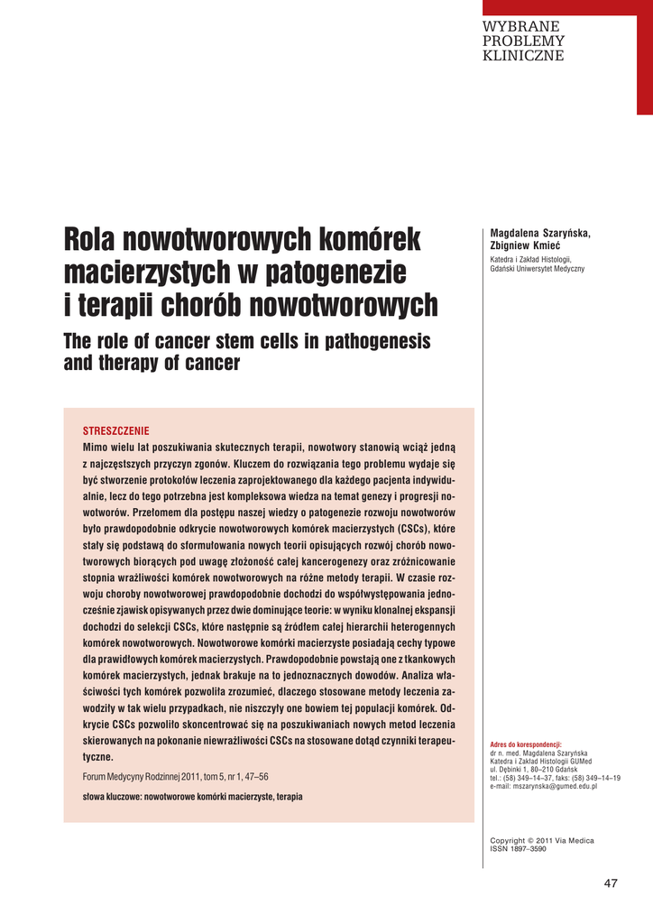 Rola nowotworowych komórek macierzystych w patogenezie i