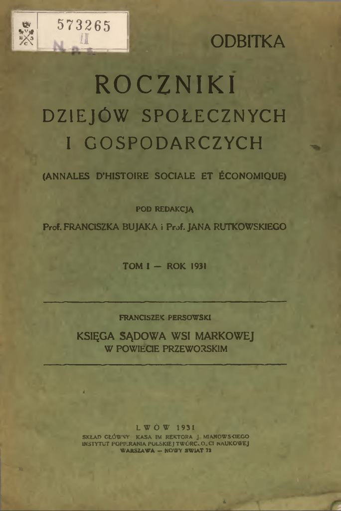 Przedmowę napisał prof Fr Bujak Lwów 192K, sir VIII i 328. Cenn Ib zł