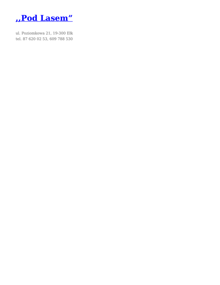 ,,Pod Lasem” ul. Poziomkowa 21, 19-300 Ełk tel. 87 620 02 53, 609 788 530