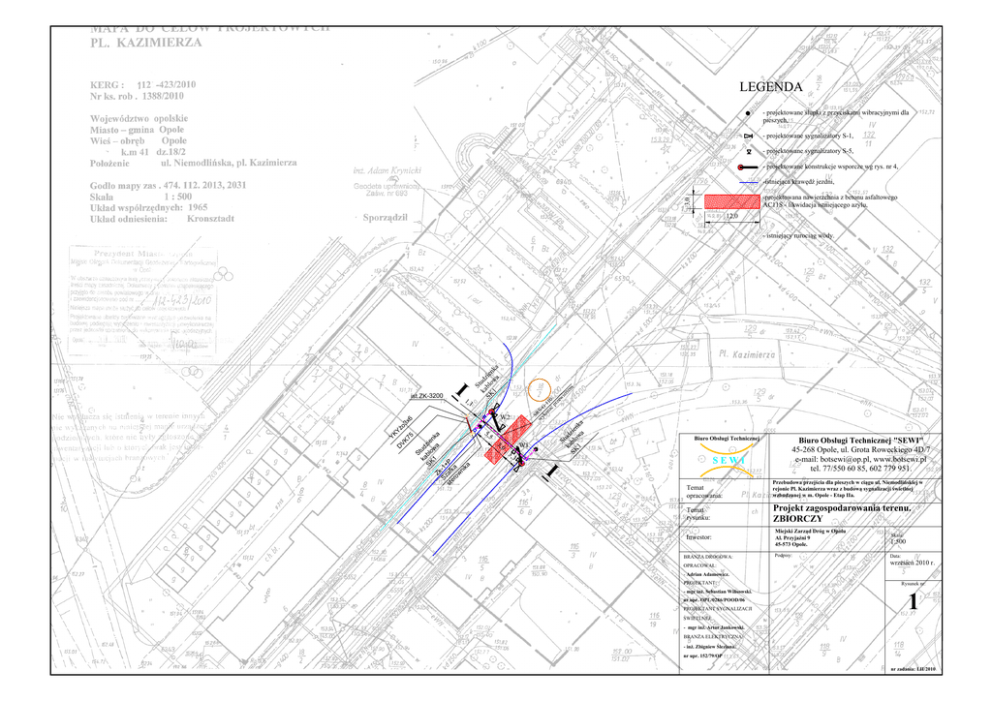 LEGENDA pieszych, - projektowane sygnalizatory S-1, - projektowane sygnalizatory S-5, - projektowane konstrukcje wsporcze wg rys. nr 4, 3,0 -projektowana nawierzchnia z betonu asfaltowego 12,0 a nk k SK ablo 1 wa ud I ist.ZK-3200 e zi St 1,1 W2 3,0 a nk ie a z ud w St ablo k ka ni +P SK SEWI I st er o w ka af Sz 1 W1 3,3 -1 SK 11 5,5 1 a nk ie a z ud w St blo ka Zk VK 75 YK Y x6 o3 D 0 G SSR 45-268 Opole, ul. Grota Roweckiego 4D/7 e-mail: [email protected], www.botsewi.pl tel. 77/550 60 85, 602 779 951. Temat opracowania: wzbudzanej w m. Opole - Etap IIa. Temat rysunku: Projekt zagospodarowania terenu. ZBIORCZY Skala: Inwestor: 45-573 Opole. 1:500 Podpisy: Data: . - Adrian Adamowicz. PROJEKTANT: nr upr. OPL/0286/POOD/06 PROJEKTANT SYGNALIZACJI Rysunek nr: 1 - nr upr. 152/79/OP nr zadania: LII/2010