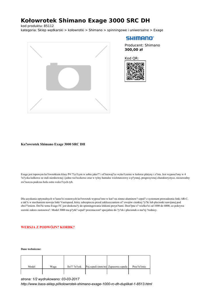 Kołowrotek Shimano Exage 3000 SRC DH - Bass
