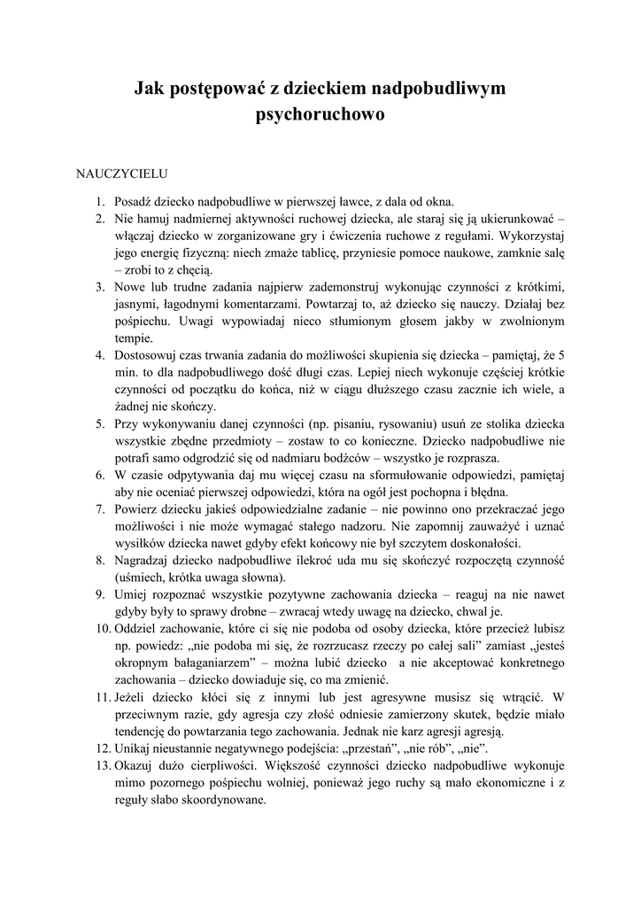 Jak postępować z dzieckiem nadpobudliwym psychoruchowo.do…