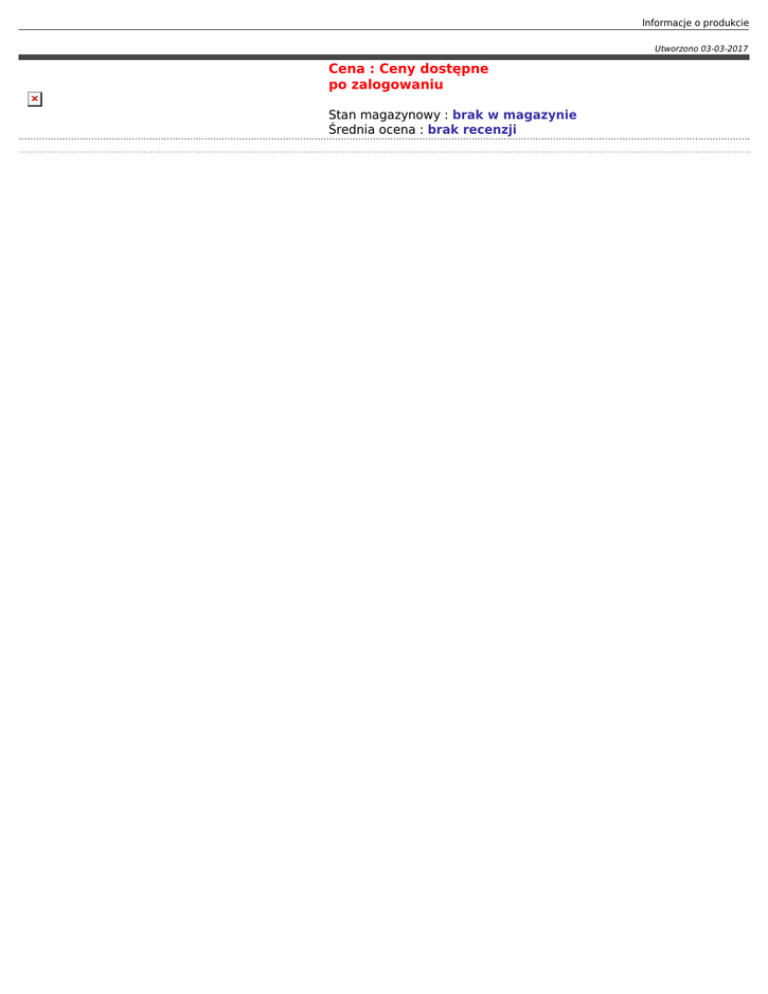 Informacje o produkcie Utworzono 03-03-2017 Cena : Ceny dostępne po zalogowaniu Stan magazynowy : brak w magazynie Średnia ocena : brak recenzji