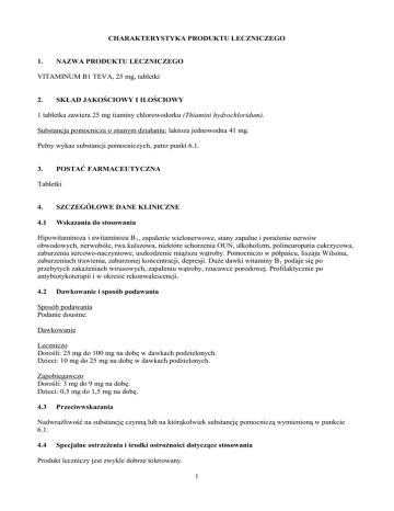 zaburzeniach trawienia, zaburzonej koncentracji, depresji. Duże dawki witaminy B 1 podaje się po