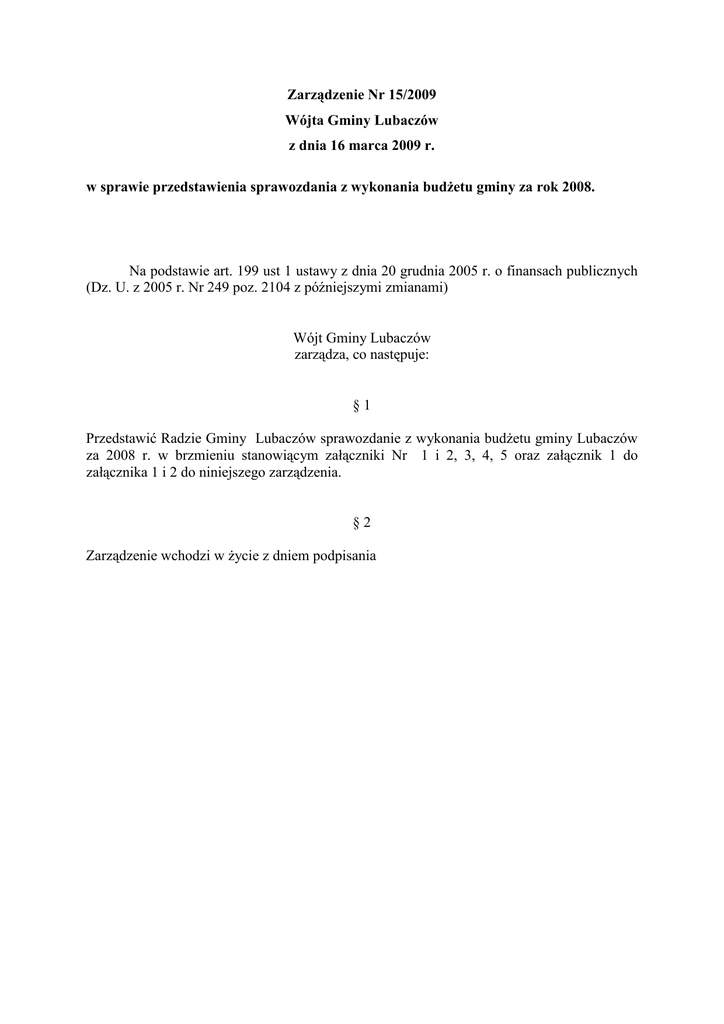 Zarządzenie Nr 15/2009 Wójta Gminy Lubaczów z dnia 16 marca