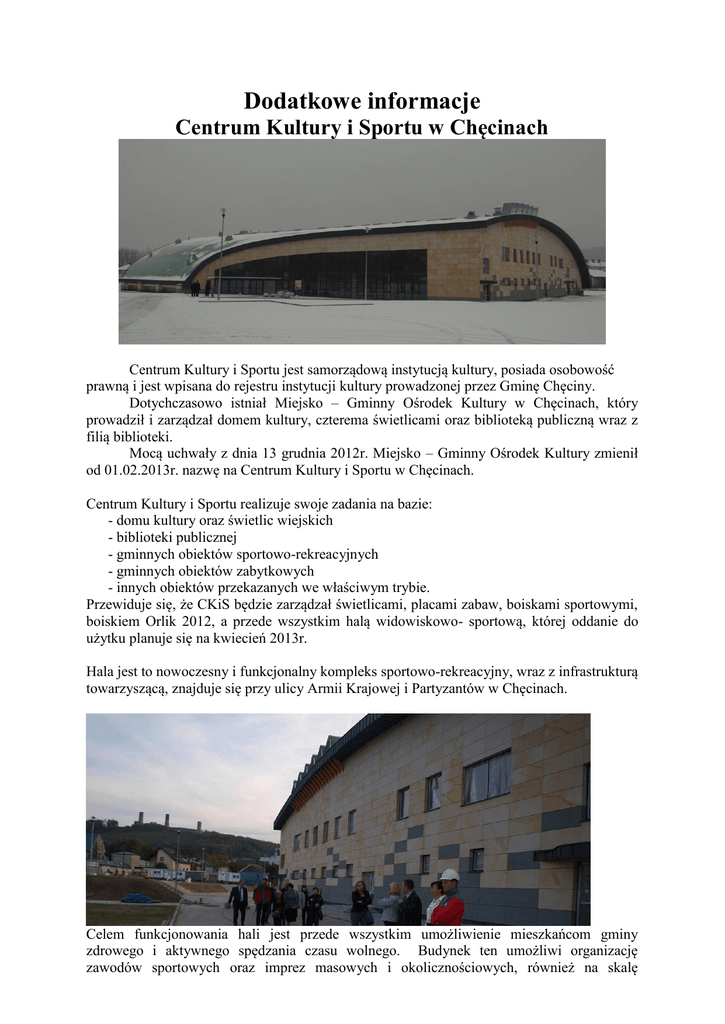 Dodatkowe informacje Centrum Kultury i Sportu w Chęcinach