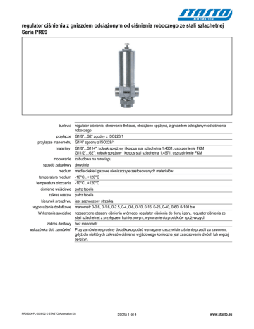 Regulator ciśnienia Seria PR09