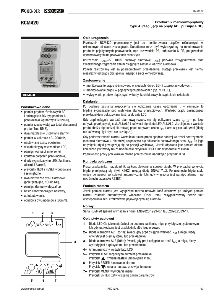 Przekaźnik różnicowoprądowy RCM420 firmy Bedner - Pro-Mac