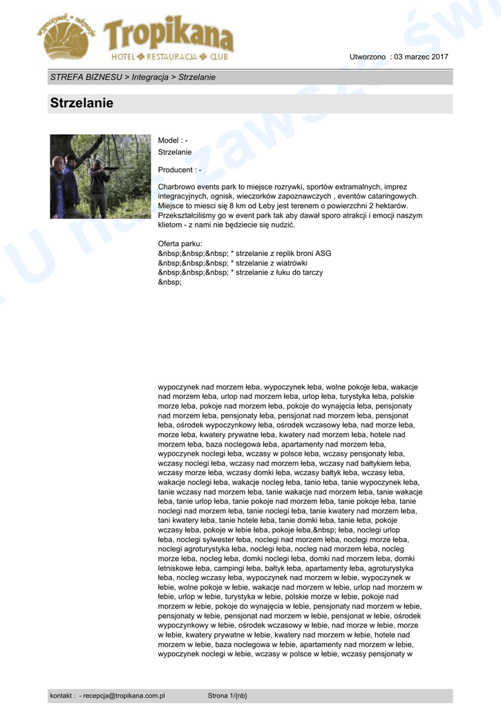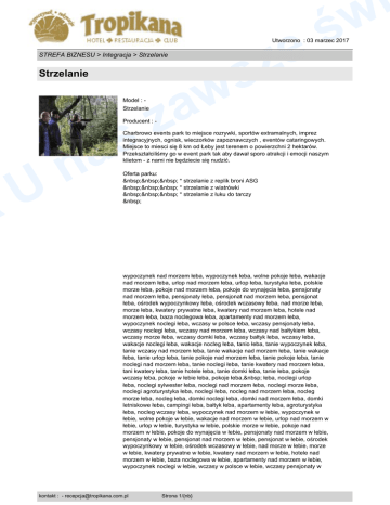 ś e i w z s Utworzono : 03 marzec 2017 STREFA BIZNESU > Integracja > Strzelanie w a z s Strzelanie Model : - Strzelanie Producent : - U A a n Charbrowo events park to miejsce rozrywki, sportów extramalnych, imprez integracyjnych, ognisk, wieczorków zapoznawczych , eventów cataringowych. Miejsce to miesci się 8 km od Łeby jest terenem o powierzchni 2 hektarów. Przekształciliśmy go w event park tak aby dawał sporo atrakcji i emocji naszym klietom - z nami nie będziecie się nudzić. Oferta parku: * strzelanie z replik broni ASG * strzelanie z wiatrówki * strzelanie z łuku do tarczy wypoczynek nad morzem łeba, wypoczynek łeba, wolne pokoje łeba, wakacje nad morzem łeba, urlop nad morzem łeba, urlop łeba, turystyka łeba, polskie morze łeba, pokoje nad morzem łeba, pokoje do wynajęcia łeba, pensjonaty nad morzem łeba, pensjonaty łeba, pensjonat nad morzem łeba, pensjonat łeba, ośrodek wypoczynkowy łeba, ośrodek wczasowy łeba, nad morze łeba, morze łeba, kwatery prywatne łeba, kwatery nad morzem łeba, hotele nad morzem łeba, baza noclegowa łeba, apartamenty nad morzem łeba, wypoczynek noclegi łeba, wczasy w polsce łeba, wczasy pensjonaty łeba, wczasy noclegi łeba, wczasy nad morzem łeba, wczasy nad bałtykiem łeba, wczasy morze łeba, wczasy domki łeba, wczasy bałtyk łeba, wczasy łeba, wakacje noclegi łeba, wakacje nocleg łeba, tanio łeba, tanie wypoczynek łeba, tanie wczasy nad morzem łeba, tanie wakacje nad morzem łeba, tanie wakacje łeba, tanie urlop łeba, tanie pokoje nad morzem łeba, tanie pokoje łeba, tanie noclegi nad morzem łeba, tanie noclegi łeba, tanie kwatery nad morzem łeba, tani kwatery łeba, tanie hotele łeba, tanie domki łeba, tanie łeba, pokoje wczasy łeba, pokoje w łebie łeba, pokoje łeba, łeba, noclegi urlop łeba, noclegi sylwester łeba, noclegi nad morzem łeba, noclegi morze łeba, noclegi agroturystyka łeba, noclegi łeba, nocleg nad morzem łeba, nocleg morze łeba, nocleg łeba, domki noclegi łeba, domki nad morzem łeba, domki letniskowe łeba, campingi łeba, bałtyk łeba, apartamenty łeba, agroturystyka łeba, nocleg wczasy łeba, wypoczynek nad morzem w łebie, wypoczynek w łebie, wolne pokoje w łebie, wakacje nad morzem w łebie, urlop nad morzem w łebie, urlop w łebie, turystyka w łebie, polskie morze w łebie, pokoje nad morzem w łebie, pokoje do wynajęcia w łebie, pensjonaty nad morzem w łebie, pensjonaty w łebie, pensjonat nad morzem w łebie, pensjonat w łebie, ośrodek wypoczynkowy w łebie, ośrodek wczasowy w łebie, nad morze w łebie, morze w łebie, kwatery prywatne w łebie, kwatery nad morzem w łebie, hotele nad morzem w łebie, baza noclegowa w łebie, apartamenty nad morzem w łebie, wypoczynek noclegi w łebie, wczasy w polsce w łebie, wczasy pensjonaty w kontakt : - [email protected] Strona 1/{nb} z s ś e i w Utworzono : 03 marzec 2017 STREFA BIZNESU > Integracja > Strzelanie w a z s Strzelanie U A a n łebie, wczasy noclegi w łebie, wczasy nad morzem w łebie, wczasy nad bałtykiem w łebie, wczasy morze w łebie, wczasy domki w łebie, wczasy bałtyk w łebie, wczasy w łebie, wakacje noclegi w łebie, wakacje nocleg w łebie, tanio w łebie, tanie wypoczynek w łebie, tanie wczasy nad morzem w łebie, tanie wakacje nad morzem w łebie, tanie wakacje w łebie, tanie urlop w łebie, tanie pokoje nad morzem w łebie, tanie pokoje w łebie, tanie noclegi nad morzem w łebie, tanie noclegi w łebie, tanie kwatery nad morzem w łebie, tanie kwatery w łebie, tanie hotele w łebie, tanie domki w łebie, tanie w łebie, pokoje wczasy w łebie, pokoje w łebie, w łebie, pokoje łeba w łebie, noclegi urlop w łebie, noclegi sylwester w łebie, noclegi nad morzem w łebie, noclegi morze w łebie, noclegi agroturystyka w łebie, noclegi w łebie, nocleg nad morzem w łebie, nocleg morze w łebie, nocleg w łebie, domki noclegi w łebie, domki nad morzem w łebie, domki letniskowe w łebie, campingi w łebie, bałtyk w łebie, apartamenty w łebie, agroturystyka w łebie, nocleg wczasy w łebie, wypoczynek nad morzem, wolne pokoje, wakacje nad morzem, urlop nad morzem, turystyka, polskie morze, pokoje nad morzem, pokoje do wynajęcia, pensjonaty nad morzem, pensjonaty, pensjonat nad morzem, pensjonat, ośrodek wypoczynkowy, ośrodek wczasowy, nad morze, morze, kwatery prywatne, kwatery nad morzem, hotele nad morzem, baza noclegowa, apartamenty nad morzem, wypoczynek noclegi, wczasy w polsce, wczasy pensjonaty, wczasy noclegi, wczasy nad morzem, wczasy nad bałtykiem, wczasy morze, wczasy domki, wczasy bałtyk, wakacje noclegi, wakacje nocleg, tanio, tanie wypoczynek, tanie wczasy nad morzem, tanie wakacje nad morzem, tanie wakacje, tanie urlop, tanie pokoje nad morzem, tanie pokoje, tanie noclegi nad morzem, tanie noclegi, tanie kwatery nad morzem, tanie kwatery, tanie hotele, tanie domki, tanie, pokoje wczasy, pokoje w łebie, pokoje łeba, noclegi urlop, noclegi sylwester, noclegi nad morzem, noclegi morze, noclegi agroturystyka, nocleg nad morzem, nocleg morze, domki noclegi, domki nad morzem, domki letniskowe, campingi, bałtyk, apartamenty, agroturystyka, nocleg wczasy, władysławowo, wakacje w polsce, ustronie morskie, sarbinowo, rowy, rewal, pokoje jastrzębia góra, pokoje gościnne, pokoje goscinne, pobierowo, niechorze, międzyzdroje, międzywodzie, mielno kwatery, mielno, mazury, kołobrzeg kwatery, kołobrzeg, karwia, jurata, jastrzębia góra, jastarnia, dziwnów, dąbki, darłówko, darłowo, www wczasy, wczasy władysławowo, wczasy w łebie, , wczasy ustka, wczasy sopot, wczasy sarbinowo, wczasy rodzinne, wczasy rewal, wczasy nad jeziorem, wczasy mielno, wczasy kołobrzeg, wczasy karwia, wczasy jastrzębia góra, wakacje łeba, w łebie, ustronie morskie noclegi, ustka tanie, ustka noclegi, tanie władysławowo, tanie wczasy, tanie mielno, tanie domki nad morzem, sarbinowo noclegi, rowy wczasy, rowy noclegi, pobierowo wczasy, pobierowo tanie, pobier