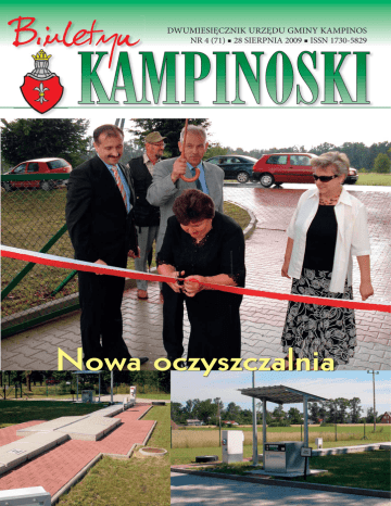 Biuletyn DWUMIESIĘCZNIK URZĘDU GMINY KAMPINOS NR 4 (71) # 28 SIERPNIA 2009 # ISSN 1730-5829 Nowa oczyszczalnia Ogłoszenie Wójta Gminy Kampinos Ogłoszenie Wójta Gminy Kampinos w sprawie przystąpienia do sporządzenia miejscowego planu zagospodarowania przestrzennego Gminy Kampinos dla fragmentu wsi Łazy Kolonia Ludwików oraz przeprowadzenia strategicznej oceny oddziaływania na środowisko projektu tego planu w sprawie przystąpienia do sporządzenia zmiany miejscowego planu zagospodarowania przestrzennego obowiązującego na fragmencie wsi Podkampinos Gminy Kampinos oraz przeprowadzenia strategicznej oceny oddziaływania na środowisko projektu tego planu Na podstawie art. 17 pkt 1 ustawy z dnia 27 marca 2003 r. o planowaniu i zagospodarowaniu przestrzennym (Dz. U. nr 80, poz. 717, z późniejszymi zmianami) oraz art. 39 ust. 1 pkt 1, 3, 4 i 5 w związku z art. 46 pkt 1 i art. 54 ust. 2 i 3 ustawy z dnia 3 października 2008 r. o udostępnianiu informacji o środowisku i jego ochronie, udziale społeczeństwa w ochronie środowiska oraz ocenach oddziaływania na środowisko (Dz. U. nr 199, poz. 1227) zawiadamiam o przystąpieniu w oparciu o Uchwałę Rady Gminy Kampinos nr XLI/180/09 z dnia 29 lipca 2009 r. do sporządzenia miejscowego planu zagospodarowania przestrzennego gminy Kampinos dla obszaru obejmującego fragment wsi Łazy Kolonia Ludwików. (treść uchwały oraz mapa określająca obszar objęty sporządzeniem planu dostępne są na stronach www.bip.kampinos.pl www.kampinos.pl oraz w Referacie Środowiska i Gospodarki Gruntami pok. 13) Zainteresowani mogą składać wnioski do wyżej wymienionego planu miejscowego w terminie do dnia 15 września 2009 r. Wnioski mogą być składane w formie pisemnej do Wójta Gminy Kampinos, ul. Niepokalanowska 3, 05-085 Kampinos , ustnie do protokołu w Urzędzie Gminy w Kampinosie pok. nr 13 w godzinach pracy urzędu, oraz za pomocą środków komunikacji elektronicznej na adres: [email protected] Wniosek powinien zawierać imię, nazwisko (ewentualnie nazwę) i adres wnioskodawcy, przedmiot wniosku oraz oznaczenie nieruchomości, której dotyczy. Złożone wnioski zostaną rozpatrzone przez Wójta Gminy Kampinos. Na podstawie art. 17 pkt 1 ustawy z dnia 27 marca 2003 r. o planowaniu i zagospodarowaniu przestrzennym (Dz. U. nr 80, poz. 717, z późniejszymi zmianami) oraz art. 39 ust. 1 pkt 1, 3, 4 i 5 w związku z art. 46 pkt 1 i art. 54 ust. 2 i 3 ustawy z dnia 3 października 2008 r. o udostępnianiu informacji o środowisku i jego ochronie, udziale społeczeństwa w ochronie środowiska oraz ocenach oddziaływania na środowisko (Dz. U. nr 199, poz. 1227) zawiadamiam o przystąpieniu w oparciu o Uchwałę Rady Gminy Kampinos nr XLI/179/09 z dnia 29 lipca 2009 r. do sporządzenia zmiany miejscowego planu zagospodarowania przestrzennego obowiązującego na fragmencie wsi Podkampinos gminy Kampinos (treść uchwały oraz mapa określająca obszar objęty sporządzeniem planu dostępne są na stronach www.bip.kampinos.pl www.kampinos.pl oraz w Referacie Środowiska i Gospodarki Gruntami pok. 13) Zainteresowani mogą składać wnioski do wyżej wymienionego planu miejscowego w terminie do dnia 15 września 2009 r. Wnioski mogą być składane w formie pisemnej do Wójta Gminy Kampinos, ul. Niepokalanowska 3, 05-085 Kampinos , ustnie do protokołu w Urzędzie Gminy w Kampinosie pok. nr 13 w godzinach pracy urzędu, oraz za pomocą środków komunikacji elektronicznej na adres: [email protected] Wniosek powinien zawierać imię, nazwisko (ewentualnie nazwę) i adres wnioskodawcy, przedmiot wniosku oraz oznaczenie nieruchomości, której dotyczy. Złożone wnioski zostaną rozpatrzone przez Wójta Gminy Kampinos. Wójt Gminy Kampinos mgr inż. Tomasz Tymoftyjewicz Ważne telefony: • • • • • • • • • • • • • • • • POLICJA w Starych Babicach (022) 722 99 97; 997 OŚRODEK ZDROWIA (Kampinos) (022) 725 00 16 STOMATOLOG (Kampinos) (022) 725 02 48; 0-518 520 570 APTEKA (Kampinos) (022) 725 04 48 czynna: od poniedziałku do piątku 8.00–18.00, w sobotę 9.00–14.00 POGOTOWIE RATUNKOWE (Błonie) (022) 731 97 95 SZPITAL (Sochaczew) (046) 864 95 00 Zakład Energetyczny (Sochaczew) (046) 862 79 48 Zakład Energetyczny (Pruszków) (022) 738 23 00 Komendant Gminny OSP (Kampinos)(022) 725 01 88; 0-504 048 119 Państwowa Straż Pożarna (Błonie) (022) 725 51 11 Weterynaria (Kampinos) (022) 725 00 32; 0-603 189 399 Wodociągi i kanalizacja (022) 725 05 98; 0-515 248 060 Stacja Uzdatniania Wody 0-510 196 772 Wywóz nieczystości 0-602 710 694 Ośrodek Doradztwa Rolniczego w Łazach (022) 725 06 30 URZĄD GMINY w Kampinosie (022) 725 00 40, 725 00 05; fax 725 04 44 Parafia p.w. Wniebowzięcia NMP w Kampinosie (022) 725 00 15 Parafia p.w. św. Doroty w Zawadach (022) 725 00 15 Wójt Gminy Kampinos mgr inż. Tomasz Tymoftyjewicz Uzależnienie i przemoc Gdzie szukać pomocy? • Ośrodek Pomocy Społecznej w Kampinosie (7.30–15.30) tel. (022) 725 00 05 w. 13 i 14 • Punkt konsultacyjny, Wikariatka (terapeuta) piątek 17.00-19.00 tel. (022) 725 01 78 • Klub Rodzin Abstynenckich PUSZCZA (wtorek i piątek od godz. 17.00) (022) 725 01 78 • Poradnia leczenia uzależnień (Sochaczew) pon.– pt. godz. 8.00–14.00 tel. (046) 864 98 20 • Terapia indywidualna i grupowa, terapia dla rodziny; Przychodnia w Błoniu wtorki i piątki: 8.00–14.00 tel. (022) 725 31 44 w. 211 poniedziałki, środy i czwartki: 14.00–17.00tel. (022) 725 37 08 w. 211 • Poradnia Ogólnopolskiego Pogotowia ‘Niebieska Linia’ tel. (022) 823 96 64, (022) 824 25 01 0-801 12 00 02, tel. kom. 0-668 262 191 • POLICJA w Kampinosie tel. (022) 725 00 07, fax (022) 725 00 84 Dzielnicowi: 0-600 997 645 • Patrol: 0-502 380 797 • Patrol KP w Lesznie: 0-608 553 997 Bezpłatny Dwumiesięcznik Urzędu Gminy Kampinos Wydawca: Urząd Gminy Kampinos, ul. Niepokalanowska 3, 05-085 Kampinos; www.kampinos.pl; www.bip.kampinos.pl Redaguje: Wioletta Siekiera, t