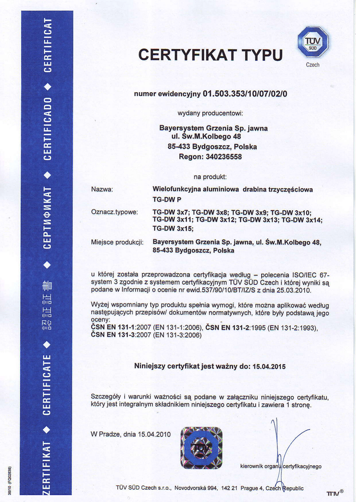 Niniejszy ceńyfikatjest ważnydo: 15.04.2o15
