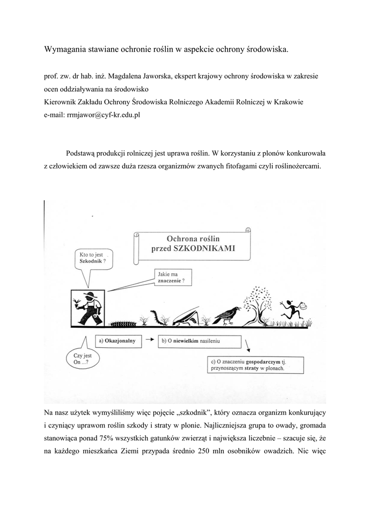Wymagania stawiane ochronie roślin w aspekcie ochrony środowiska