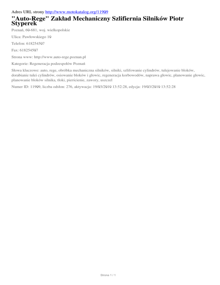 "Auto-Rege" Zaklad Mechaniczny Szlifiernia Silnikow Piotr Styperek