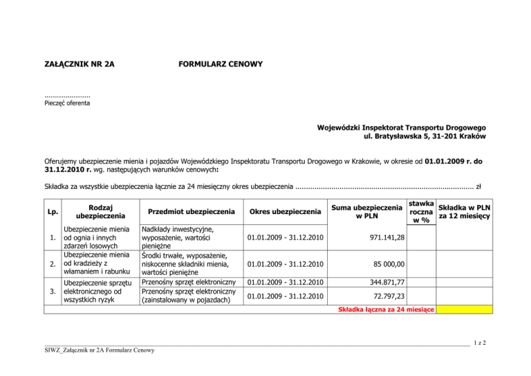 załącznik nr 2a formularz cenowy