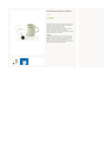 Porcelanowy spieniacz Faenza Frabosk 49.90ZŁ Elegancki i trwały, wykonany z porcelany spieniacz do mleka włoskiej firmy Frabosk zaspokoi oczekiwania najbardziej wymagających klientów. Spieniacz Faenza wyposażony jest w: porcelanowy kubek o pojemności 300 ml, tłoczek z gęstym, plastikowym sitkiem i pokrywką z pleksi. Zapakowany w kolorowy lakierowany kartonik, doskonale nadaje się na prezent. Przepis: Gorące mleko (najlepiej 2%) wlać do 1/3 wysokości spieniacza i ubijać je przez ok. 20 sekund, po czym odkryć i odstawić na chwilę by mleczna piana mogła zgęstnieć. Teraz wystarczy zaparzyć kawę a na wierzch wyłożyć pianę mleczną i posypać cynamonem lub kakao. Pyszne cappuccino gotowe!