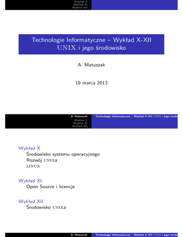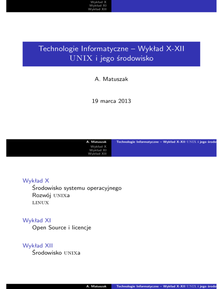Technologie Informatyczne – Wykład X-XII UNIX i jego środowisk