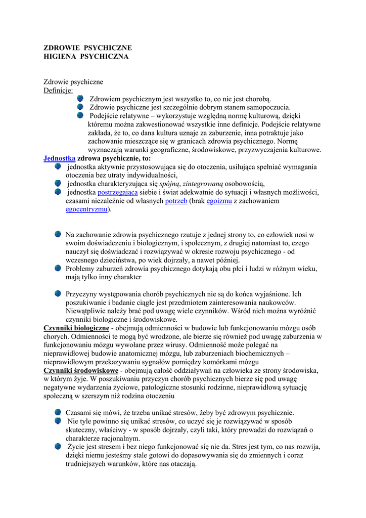 ZDROWIE PSYCHICZNE HIGIENA PSYCHICZNA Zdrowie