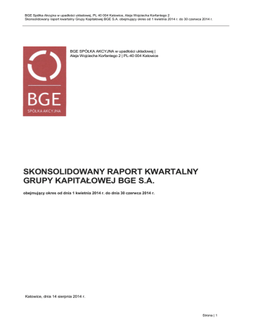 skonsolidowany raport kwartalny grupy kapitałowej bge sa